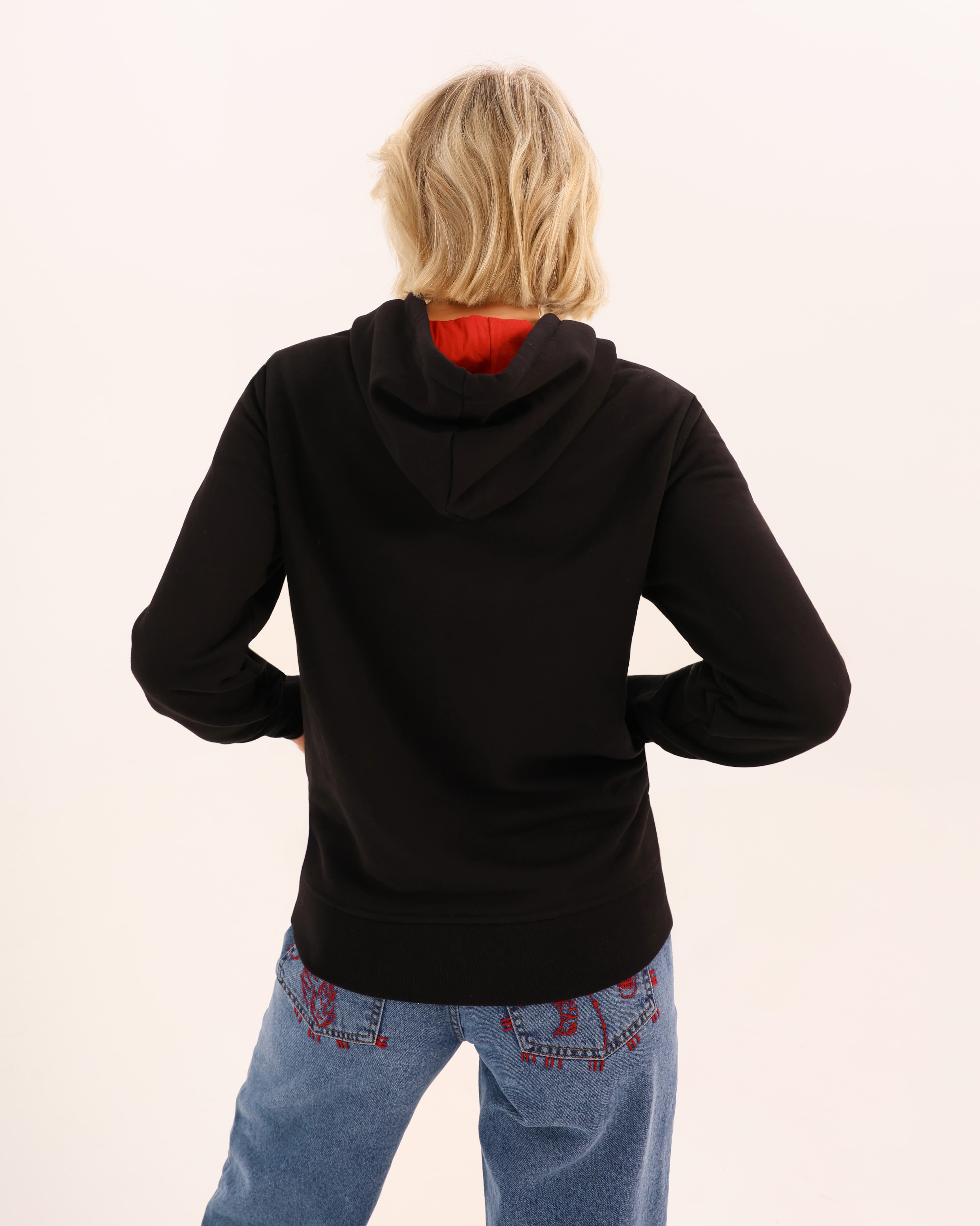Crafted from soft, structured cotton, this signature cotton hoodie offers a comfortable yet refined fit. Subtle details like the contrasting red inner hood and matching drawstrings highlight inner energy while adding a touch of sophistication.
