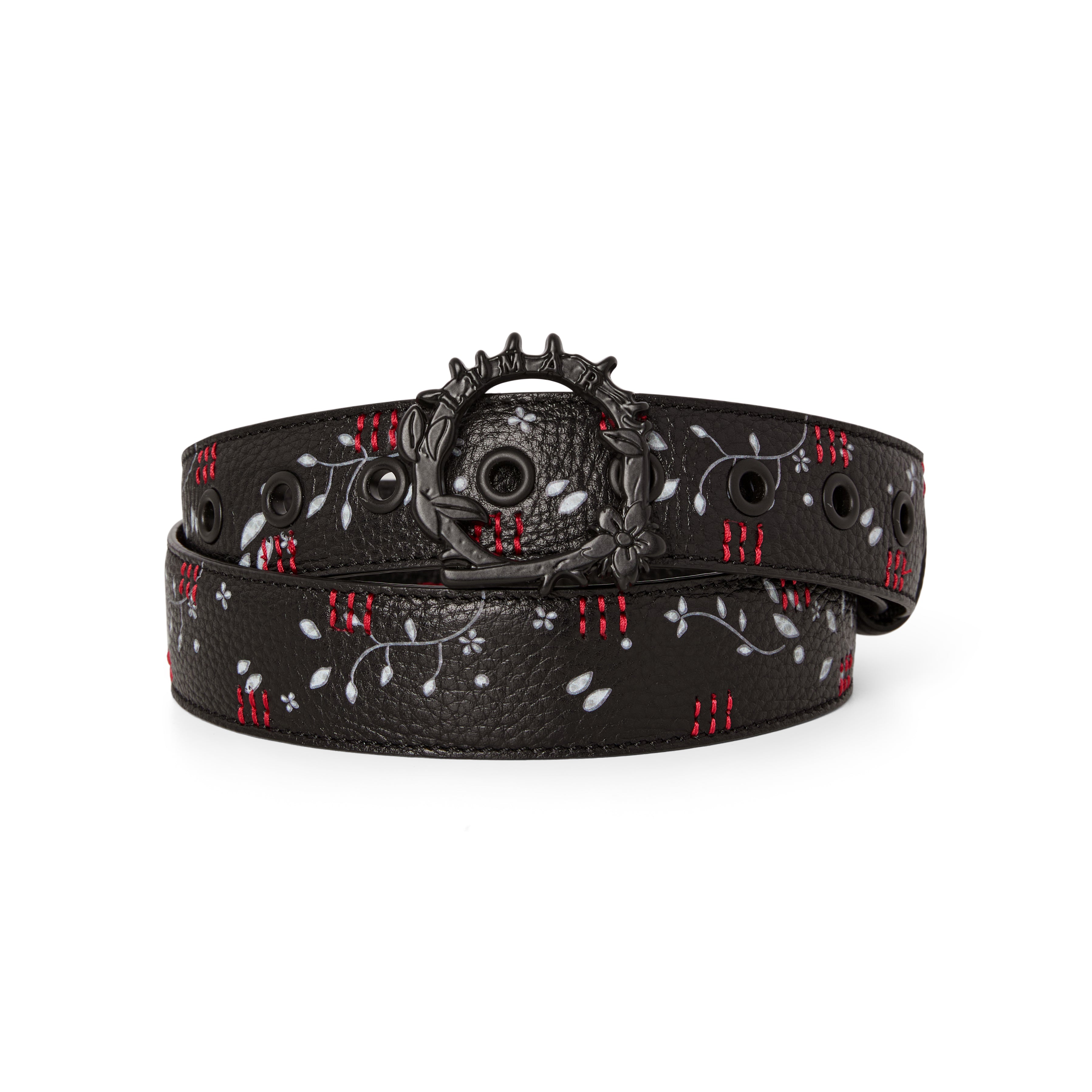 Crafted from premium textured black leather, this belt features a striking white vine print and red embroidered accents. Each detail reflects LIMAR’s dedication to quality, craftsmanship, and bold feminine design.